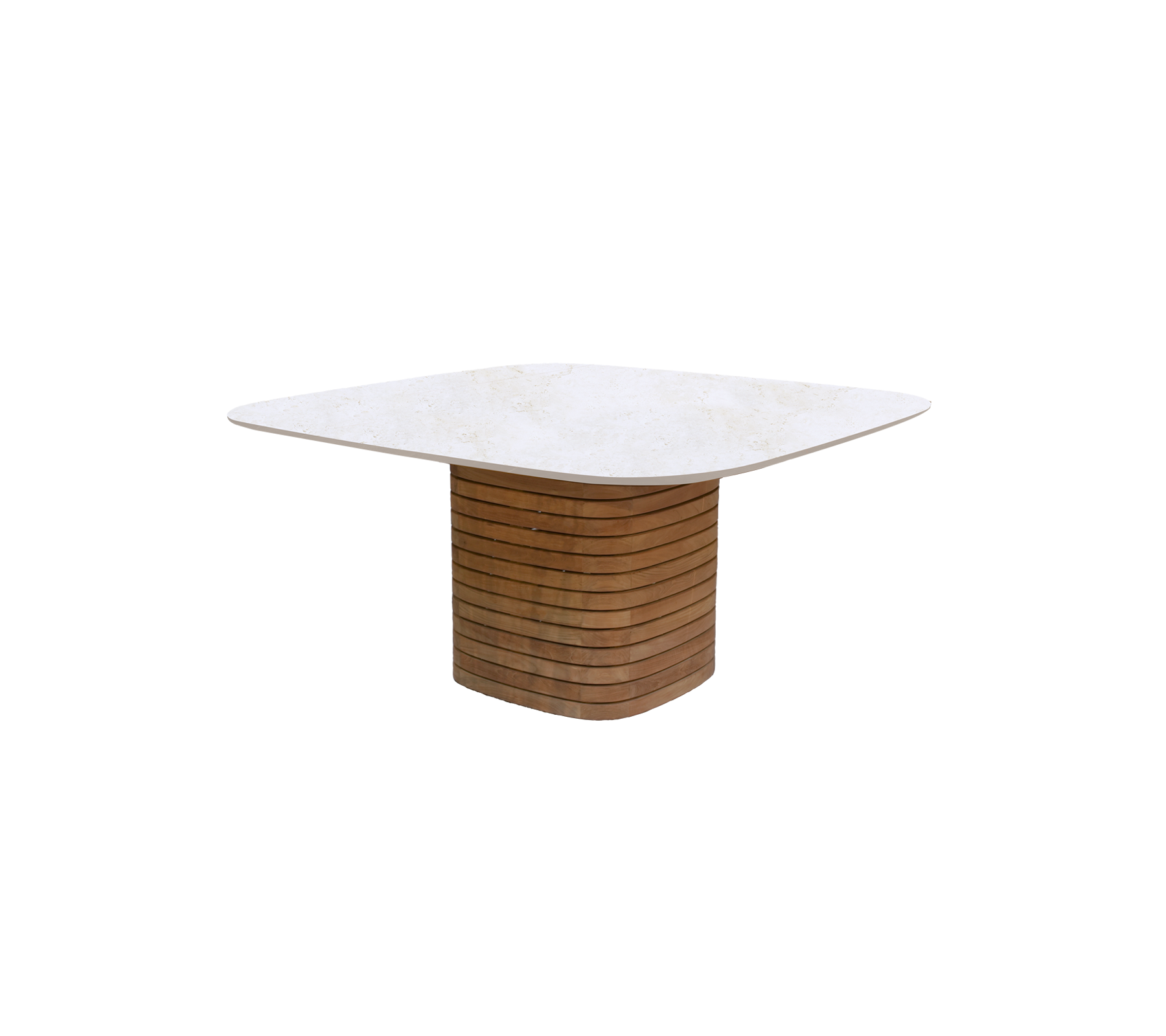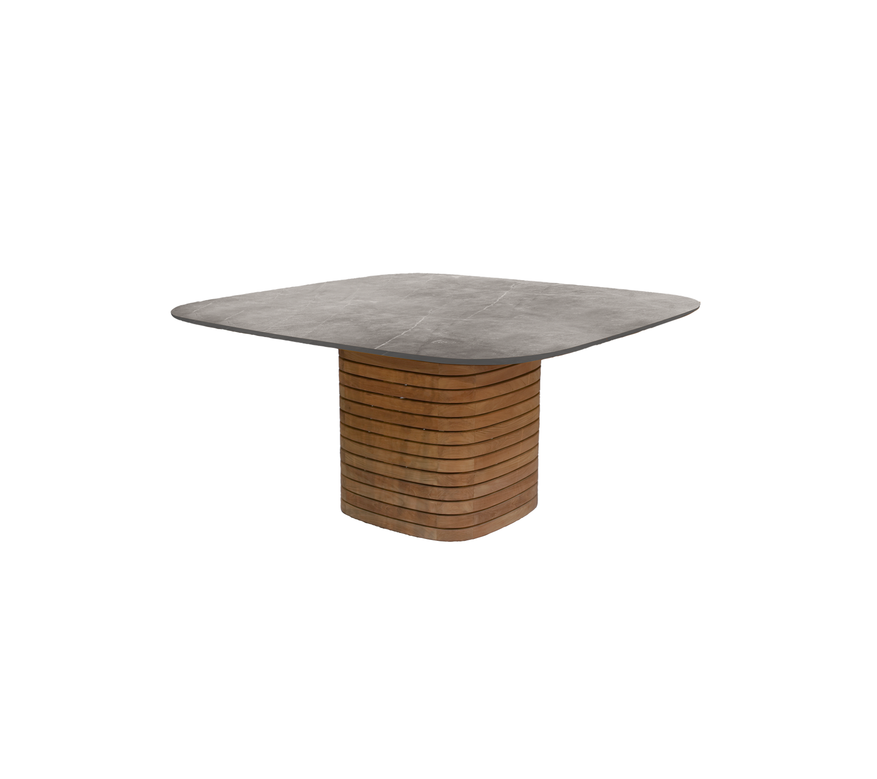 De tafel is ontworpen voor samenzijn — ideaal voor lange diners en gesprekken onder de open lucht. Combineer de vierkante zuilbasis met een tafelblad in het materiaal van uw keuze om de uitstraling af te stemmen op uw omgeving.